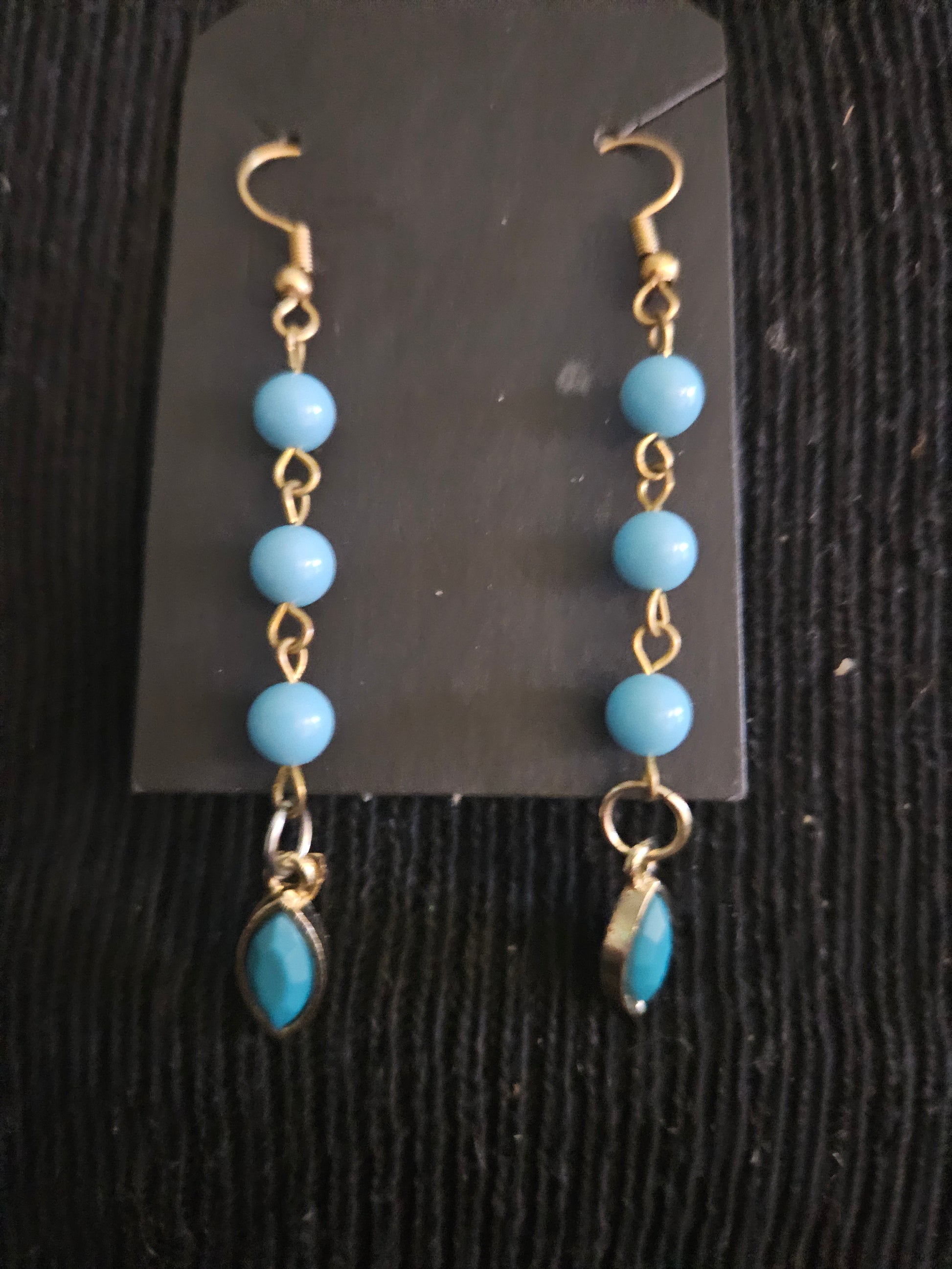 These expert-crafted earrings feature vibrant turquoise-colored beads paired with elegant pointed oval charms in matching hues. The harmonious design captures a refined balance of color and shape, making them a versatile accessory that adds a distinctive, polished touch to any ensemble. Ideal for those seeking subtle yet striking statement jewelry.