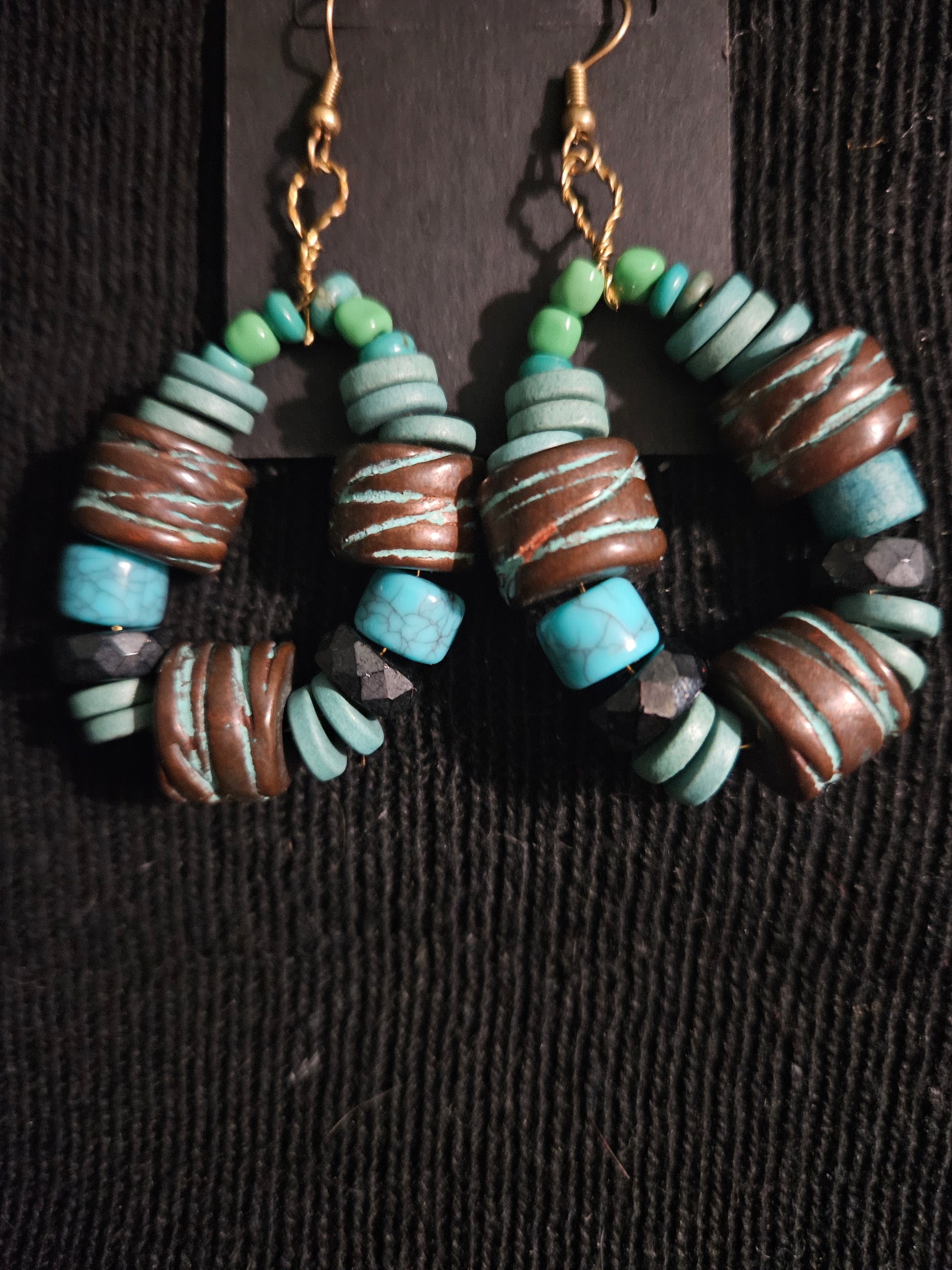 Bohemiun Blue tear-shaped drop earrings showcase an expert blend of turquoise beads, brass beads accented with turquoise-colored streaks, and hematite beads. This combination offers a harmonious balance of vibrant color, metallic warmth, and subtle shimmer, crafting a distinctive and elegant accessory perfect for elevating any outfit.