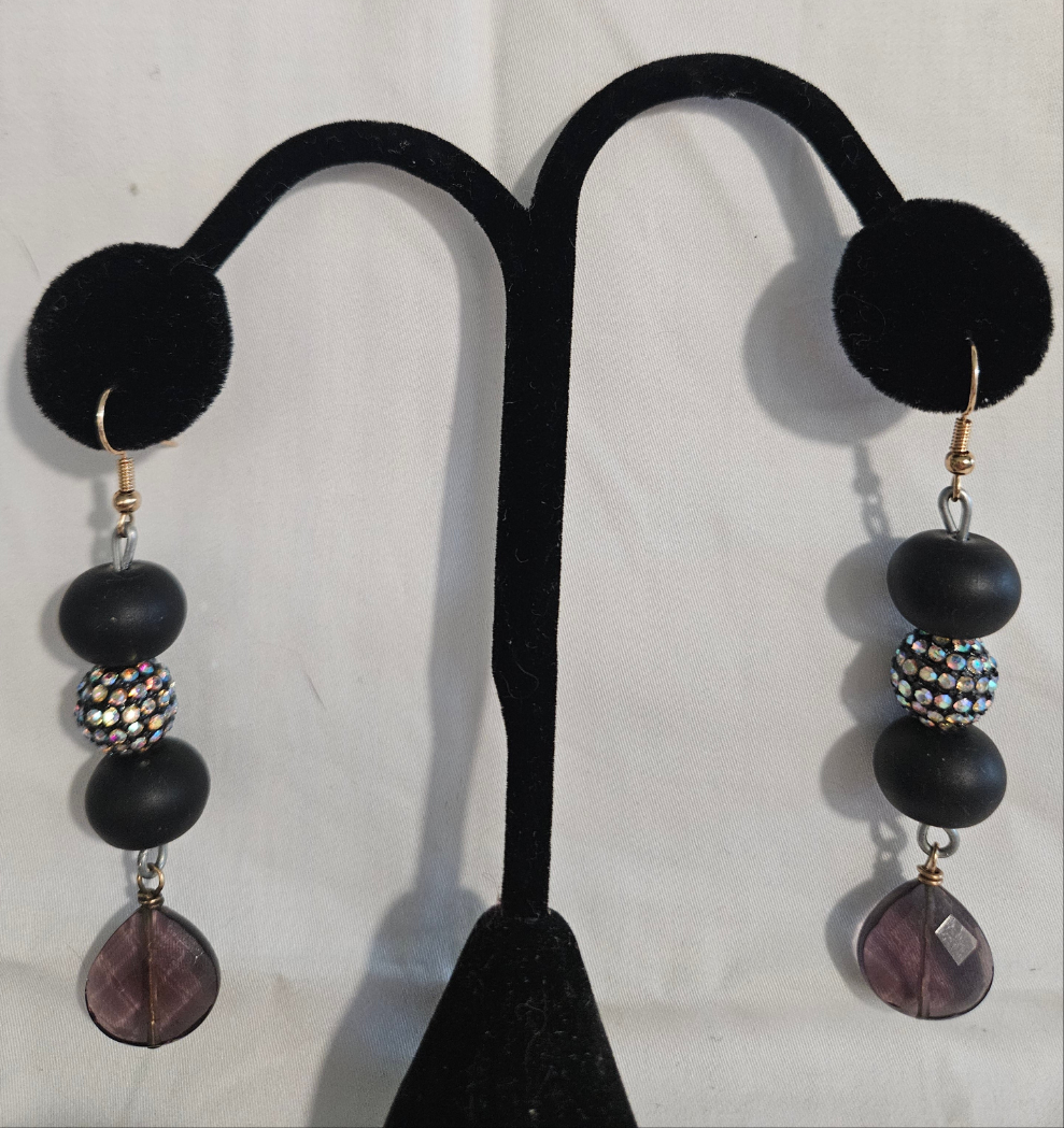 Elevate your ensemble with these expertly crafted earrings featuring lustrous black onyx stone beads, shimmering disco ball beads, and elegant purple chandelier crystals. The combination of deep onyx and sparkling accents delivers a sophisticated contrast, while the cascading chandelier crystals add refined movement and color. Designed to balance boldness with elegance, these earrings are perfect for making a statement at formal events or elevating everyday looks with a touch of artistry.