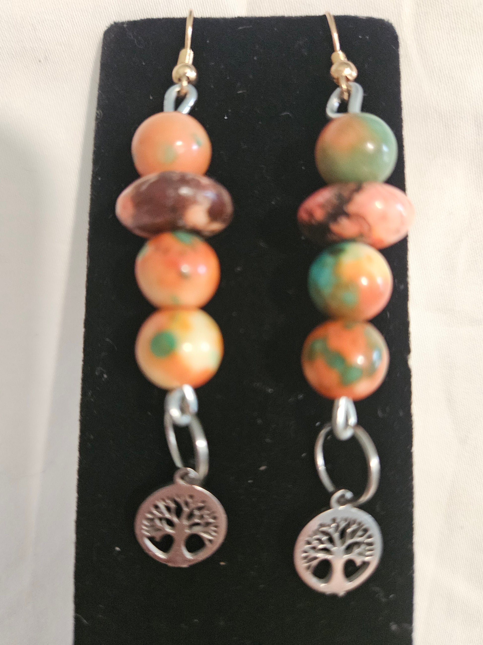 These expert-crafted earrings feature vibrant multicolored glass beads that catch the light beautifully, paired with a delicate miniature Tree of Life charm. Symbolizing growth and connection, this design offers a meaningful accessory that enhances any ensemble with both color and elegance. Ideal for those who appreciate thoughtful artistry and symbolic jewelry.